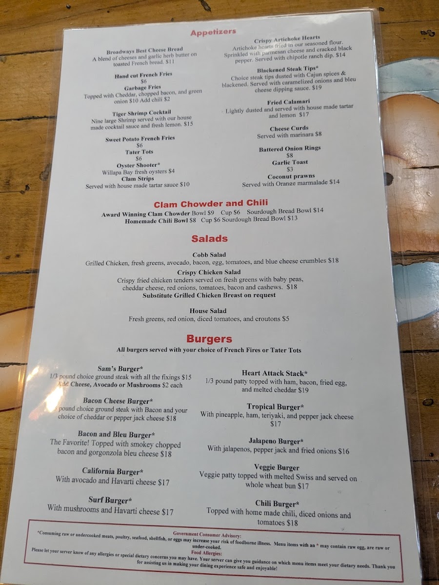 Welcome to Sam's Seaside Cafe, a delightful culinary gem nestled along the picturesque boardwalk of Seaside, Oregon. Located at 104 Broadway St, this cozy cafe offers a warm, inviting atmosphere, perfect for families and food lovers alike.